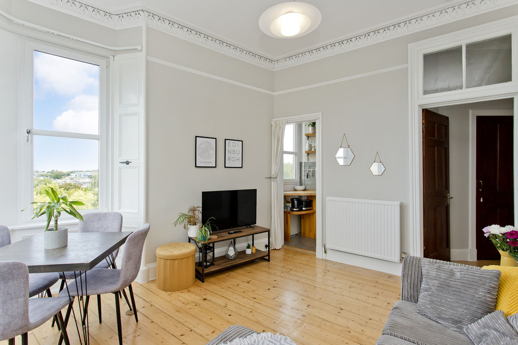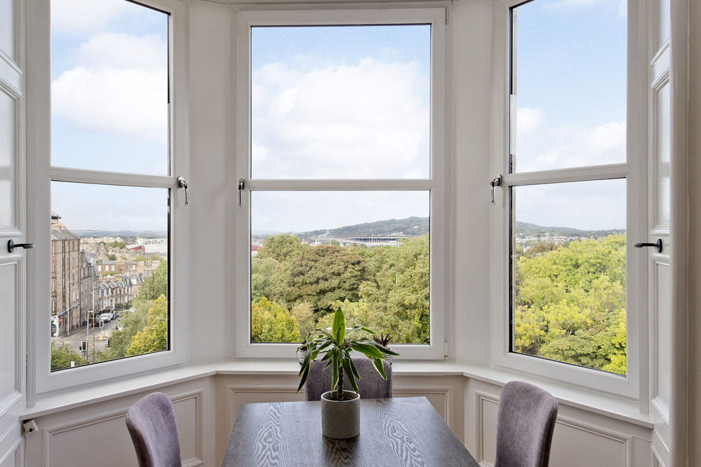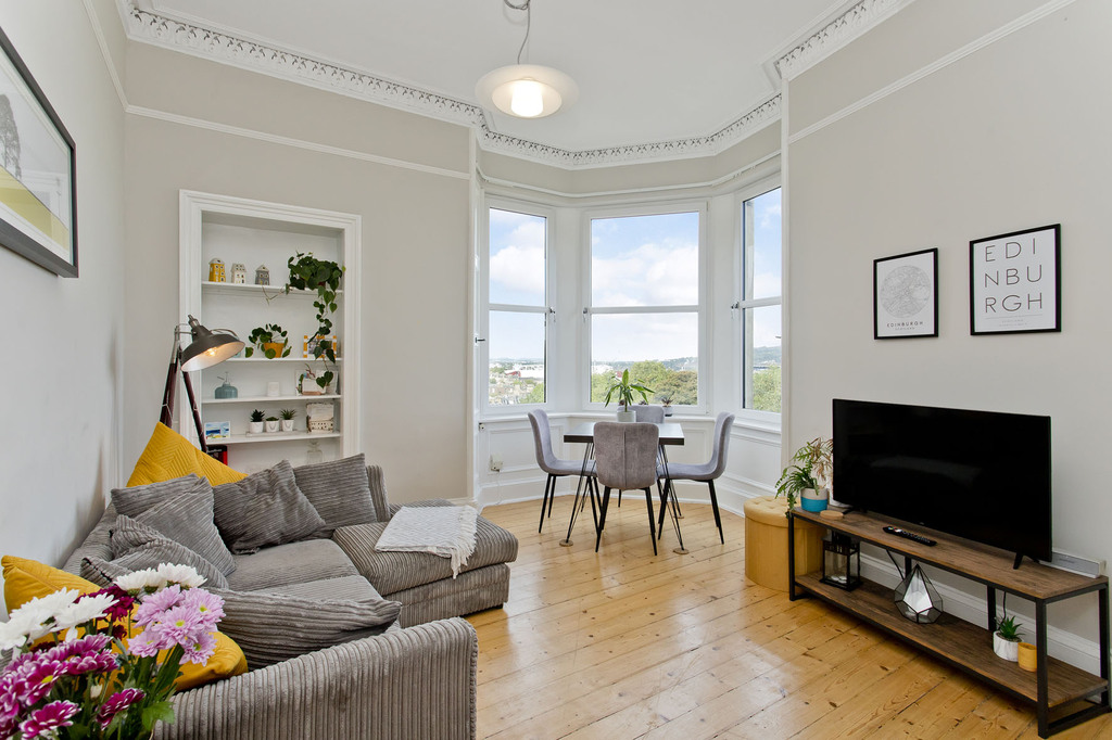 This top-floor corner flat forms part of a traditional tenement building in popular Polwarth, set within easy reach of excellent amenities, Haymarket train station, and Edinburgh’s fashionable West End.