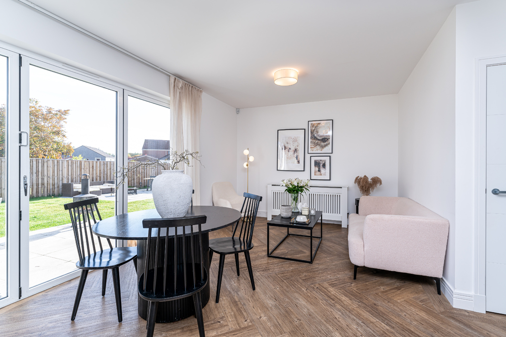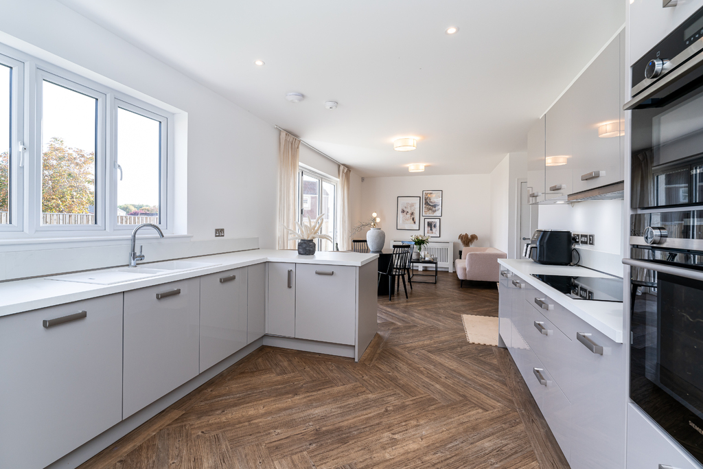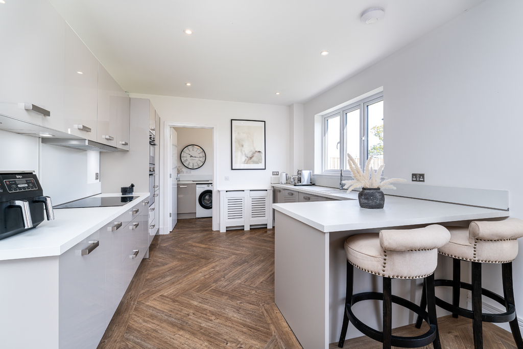 The spacious Living Room overlooks the front garden, while the open plan Kitchen/Diner/Family Room, with breakfast bar and high-spec integrated Siemens appliances, including dishwasher, hob and an eye-level oven, has parquet flooring and bi-fold doors leading to the rear garden.