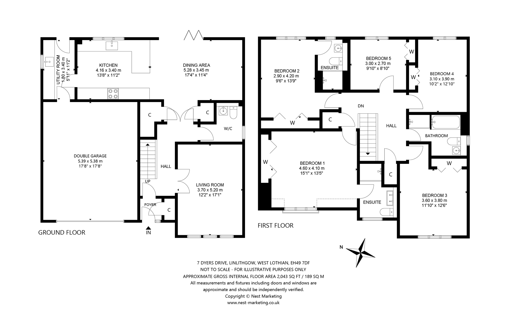 The Master Bedroom features bespoke built-in wardrobes and an en- suite shower room, while the four additional double bedrooms all with built-in wardrobes and one with an en-suite shower room.