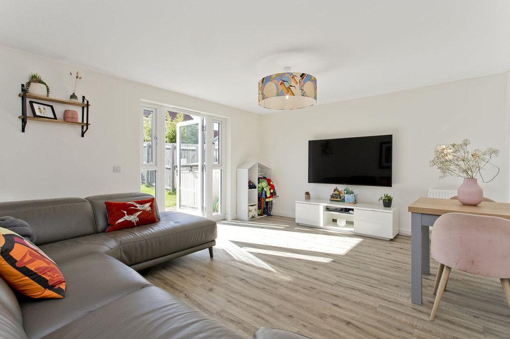 The property benefits from a gas central heating system and full double-glazing and, outside, the south-facing rear garden is securely enclosed by fencing to create a safe outdoor space for family recreation. The area is easy to maintain with a lawn, box planting, and a raised deck for alfresco dining. A small front garden and unrestricted parking can be found at the front of the property.