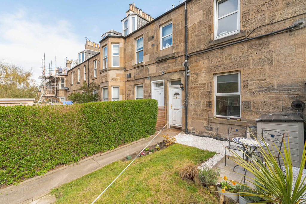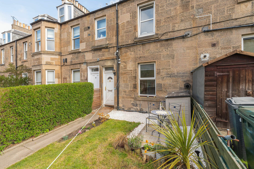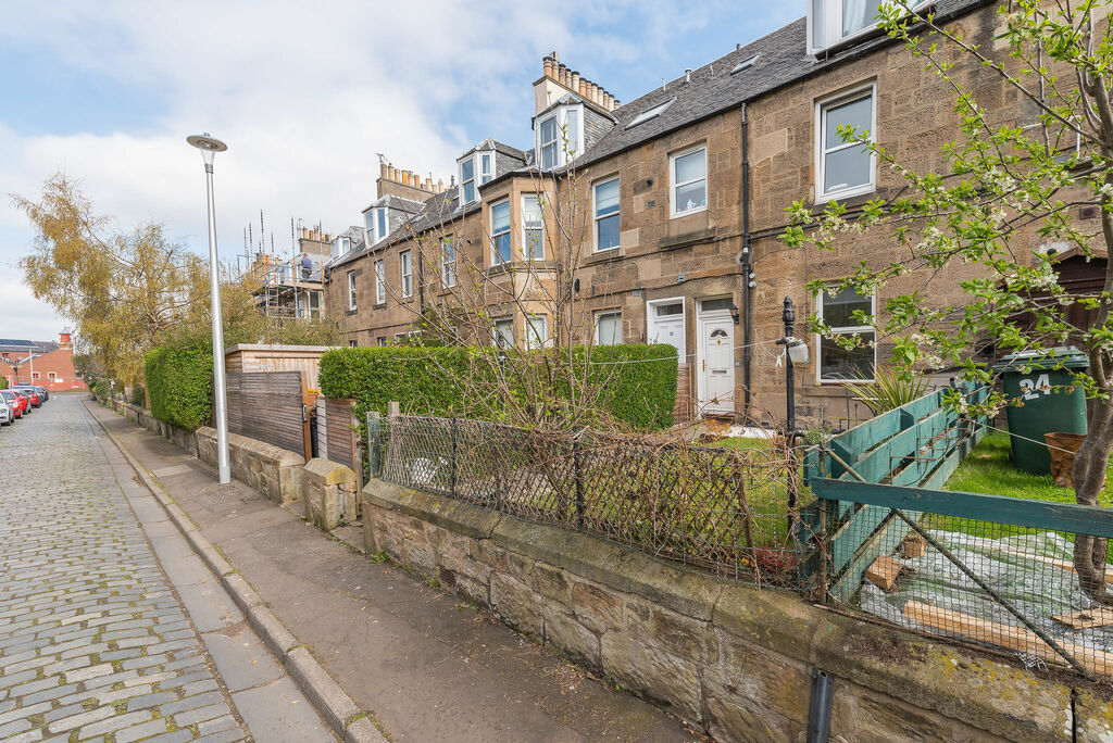 Set within a quiet no-through road it enjoys a peaceful position and a tranquil front garden yet is moments from Harrison Park, and the Union Canal along with excellent amenities at Fountain Park and those in bustling Gorgie and Dalry.